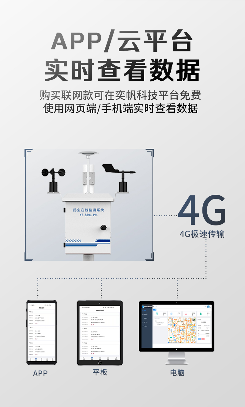 YF-8500-TSPTSP質(zhì)量監(jiān)測系統(tǒng)由各類環(huán)境傳感器、數(shù)據(jù)采集主控、無線通訊設(shè)備、供電設(shè)備、軟件平臺(tái)組成??捎糜跍y量 PM2.5、PM10、TSP 等各類環(huán)境空氣數(shù)據(jù)。系統(tǒng)采用模塊化設(shè)計(jì),可根據(jù)不同地域環(huán)境狀況,對(duì)環(huán)境各要素靈活增加或減少相應(yīng)的模塊和傳感器,任意組合,方便快捷的滿足各種用戶需求。數(shù)據(jù)通過無線/GPRS上傳至云管理平臺(tái),運(yùn)用大數(shù)據(jù)智能動(dòng)態(tài)分析、及時(shí)報(bào)警、精準(zhǔn)鎖源,強(qiáng)化監(jiān)管體系。